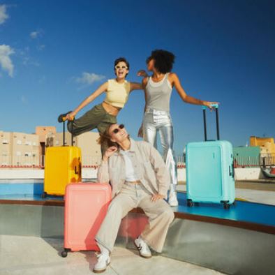 Myymälässä laajempi valikoima matkalaukkuja.Useita merkkejä eri kokoja ja värejä